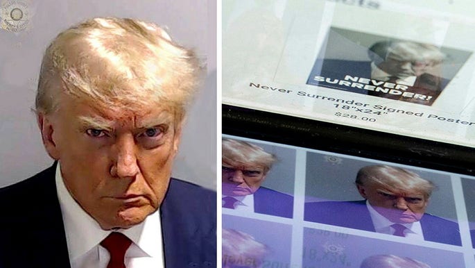 Den s k "Mugshoten" på f d president Trump tillverkar han som T-shirts, muggar osv. Det kanske blir en storsäljande souvenir. Det som de flesta kanske skulle bli generade över att behöva utstå, vänder han till en affärsidé. Många av hans anhängare hejar på.